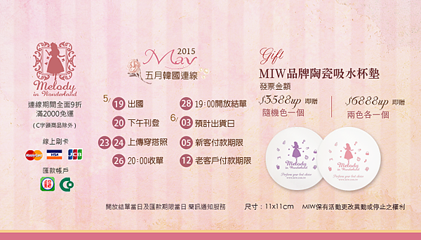 最後附上這次的排程表,這次的滿額贈是很可愛很實用的陶瓷吸水杯墊唷!
