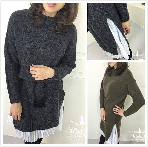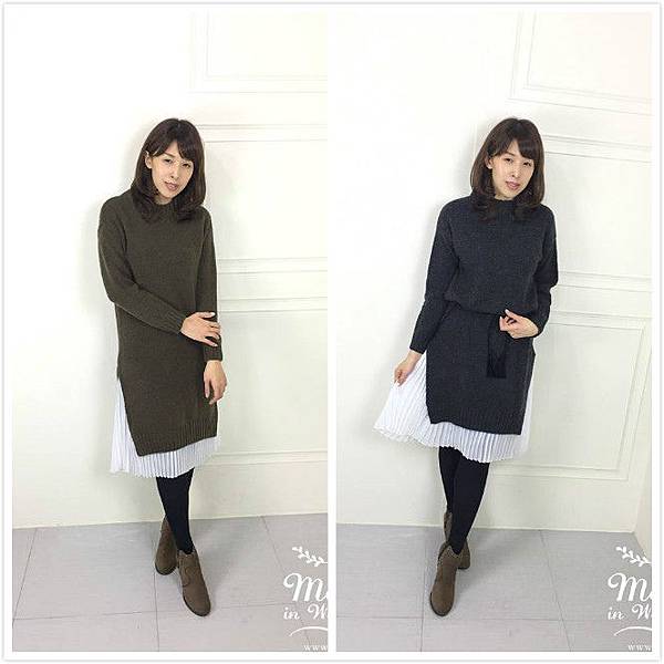 1. 假兩件式設計的長版毛衣洋裝,並不多見