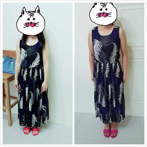 左邊是150/48KG的小個子小幫幫~穿著平底拖鞋的她,裙子也還沒拖地,顯示搭了跟鞋就沒有駕馭不了的問題~