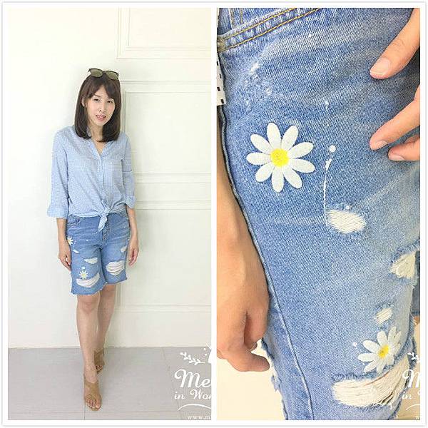 因為我比較常穿牛仔短褲,又覺得刺繡小雛菊的甜美秀氣和刷破的衝突性,實在太迷人~