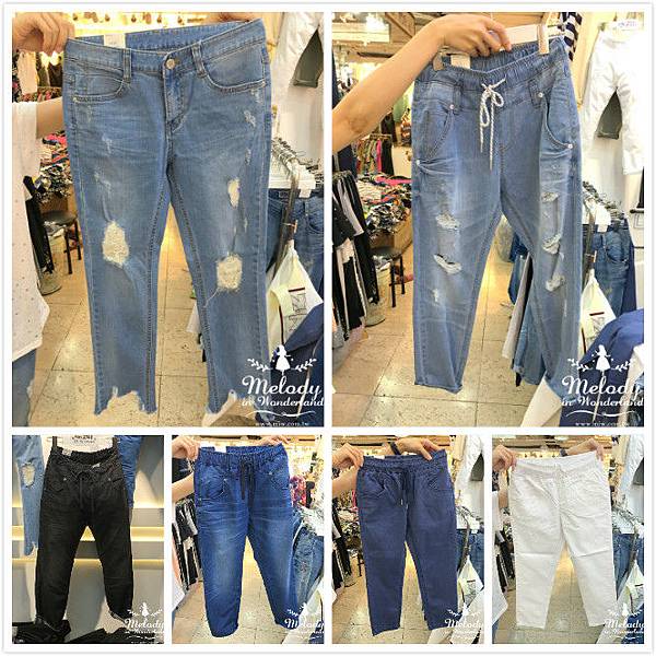硬要挑兩款的話~我想我會挑上排右邊的破褲/下排左一的百搭牛仔款/及下排的紫色褲子~(內心就是想挑三款)