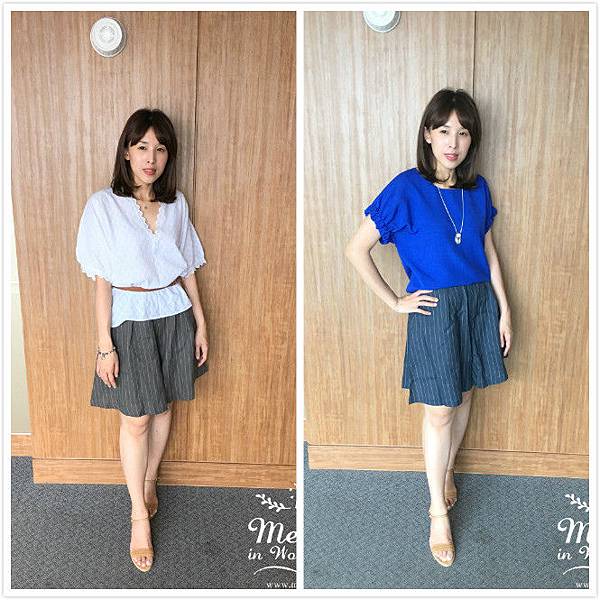 深藍我沒有紮進去穿/莓果我紮進去穿~~~~應該很明顯吧^^