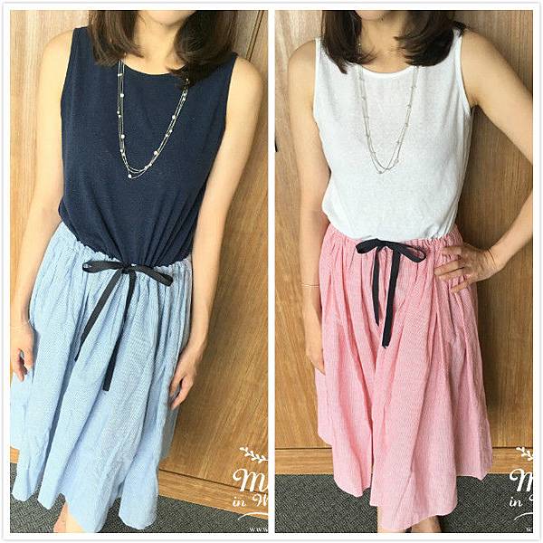 棉質背心拼接比較挺的裙身,讓上身很舒服,下身很修飾~