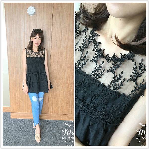 短版這款前面很素~背面又有些蕾絲花樣,搭配起來不會太單調,也不太需要費心(隨便搭都搭)