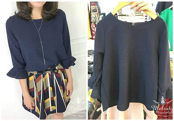 1609-026 素雅棉麻荷葉袖擺上衣(5色) 深藍款 https://goo.gl/8l6jeD