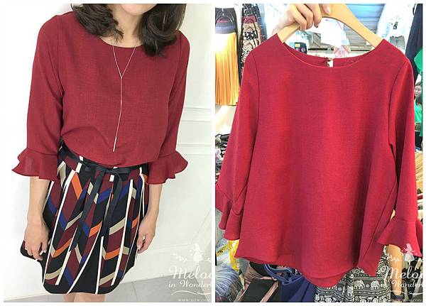 1609-026 素雅棉麻荷葉袖擺上衣(5色) 紅色款 https://goo.gl/kUR1Ho
