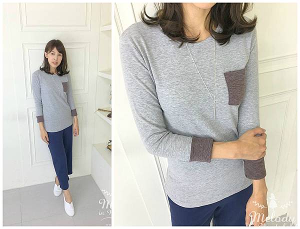 1609-096 簡約翻袖單口袋上衣(5色) 淺灰款 https://goo.gl/vaDQdg