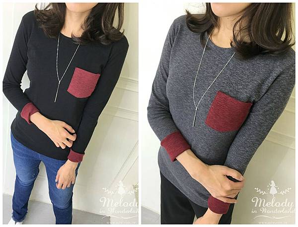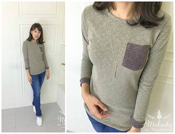 袖擺的撞色翻袖設計,翻了就有8分袖的感覺~不翻就是長袖囉~