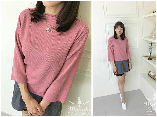 1609-100 滾邊羅紋上衣(5色) 莓果粉款 https://goo.gl/kNFgDh