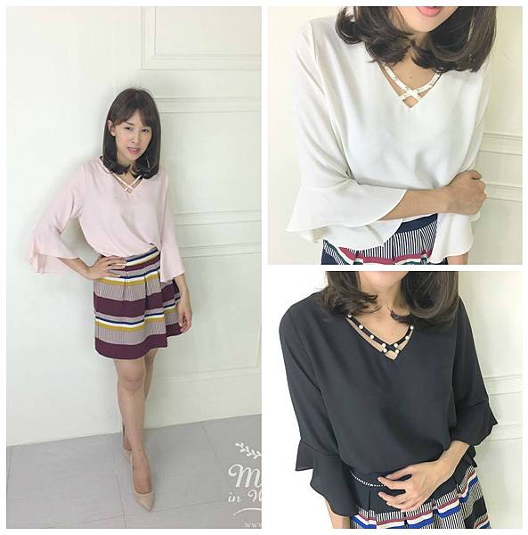1609-015 V領雕花袖擺上衣(3色) 黑色款 https://goo.gl/1cC5RD