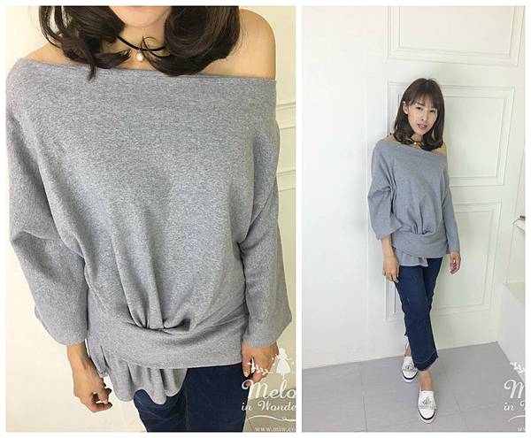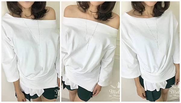 棉質彈性很好,因此除了一般正常的穿法以外~還有有足夠的延展度去拉平肩/斜肩兩種變化~
