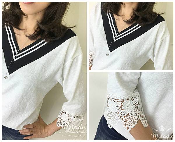 1609-015 V領雕花袖擺上衣(3色) 白色款 https://goo.gl/f8rDex