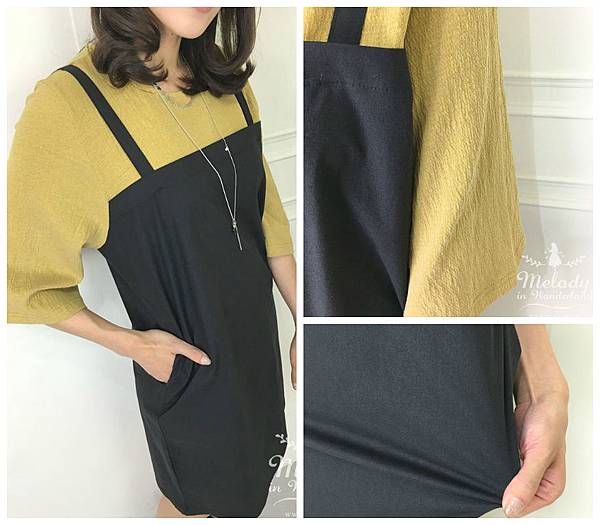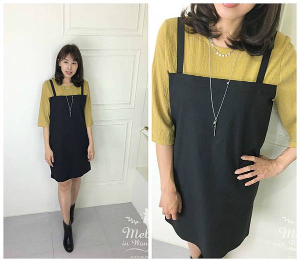 1609-001 假兩件氣質背心洋裝(3色) 黑色款 https://goo.gl/ZX8WE1