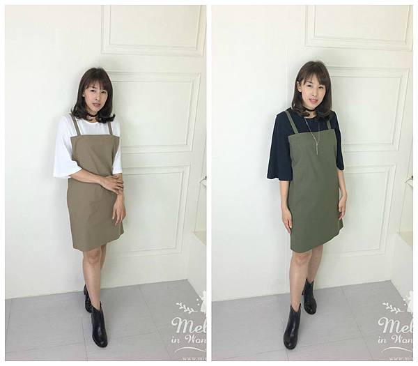1609-001 假兩件氣質背心洋裝(3色) 軍綠款 https://goo.gl/VhJ72l