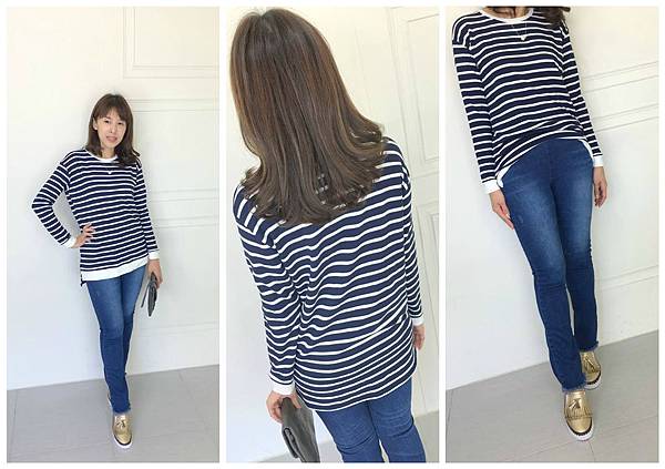 且條紋款的魅力就是,隨著搭配的方式不同~既可以休閒也可以,亦可以正式。