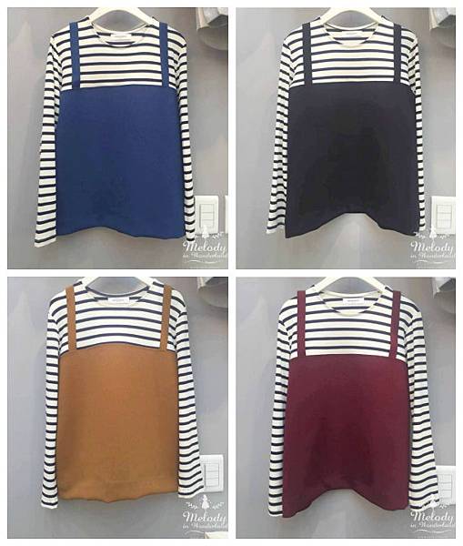 ▶▶▶ 1609-161 假兩件式條紋背心上衣(4色) 駝色款