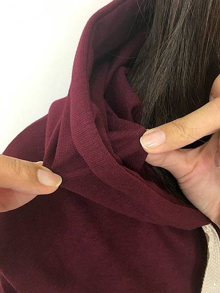 先來看一下這款的布料,是很有彈性的針織布料,內裡穿起來很舒適~不會刺!