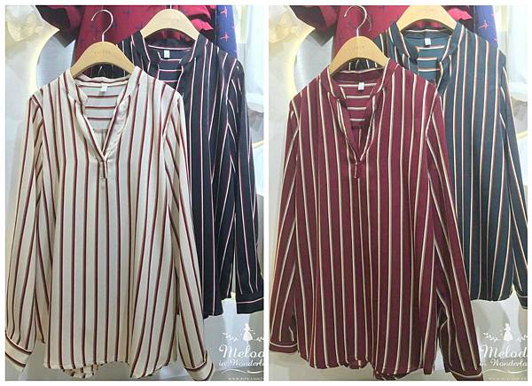 ▶▶▶ 1609-166 氣質V領條紋襯衫(4色) 酒紅款/綠色款