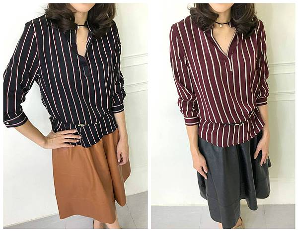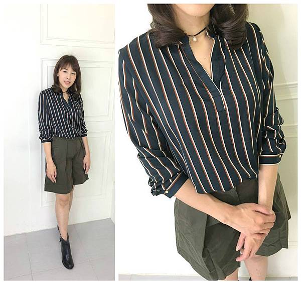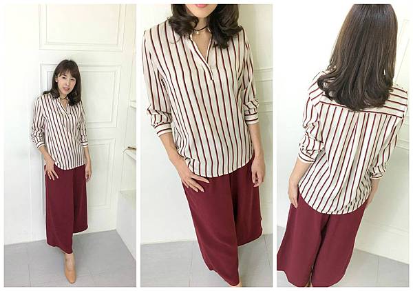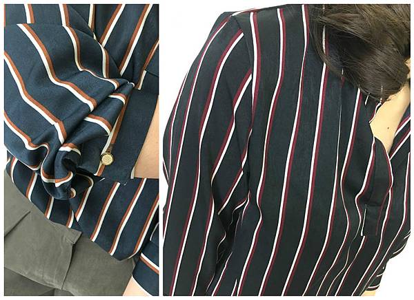 直紋也有拉長修飾的效果,再加上V領的版型,真是完美!
