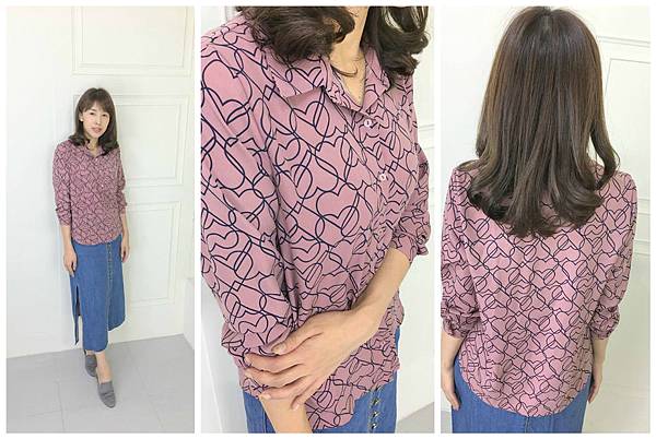 ▶▶▶ 1609-165 復古風愛心圖騰襯衫上衣(4色) 白色款/粉色款
