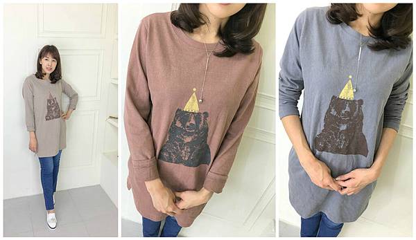 ▶▶▶ 1609-168 馬戲團黑熊長版棉T(3色) 藍色款/咖色款