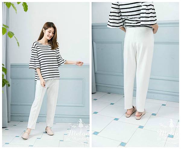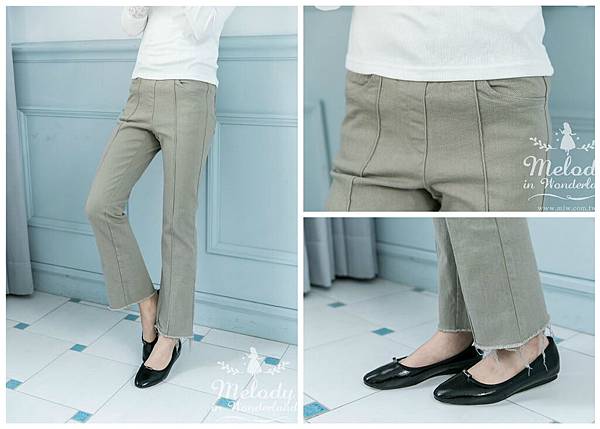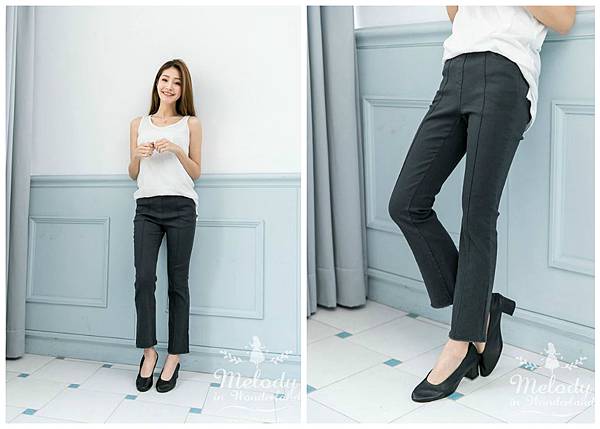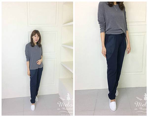 接著和上一款一樣,利用褲中的壓線~垂直分散了擴張的視覺感!
