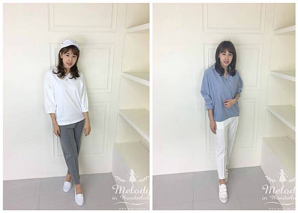 上衣搭的是這款,帶點休閒又小甜美的款式,也是上身很舒適的款式~
