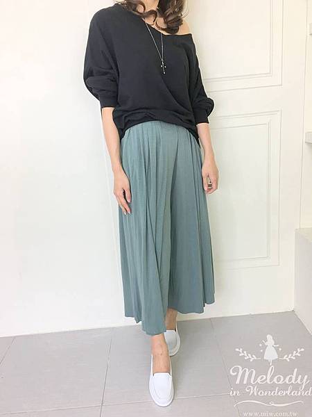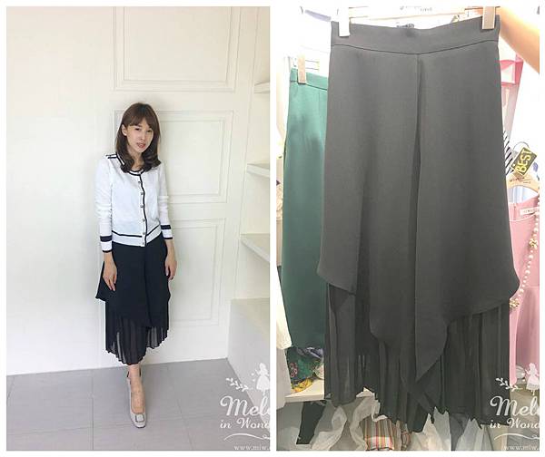 1703-016 斜擺百褶雪紡寬褲裙(2色)