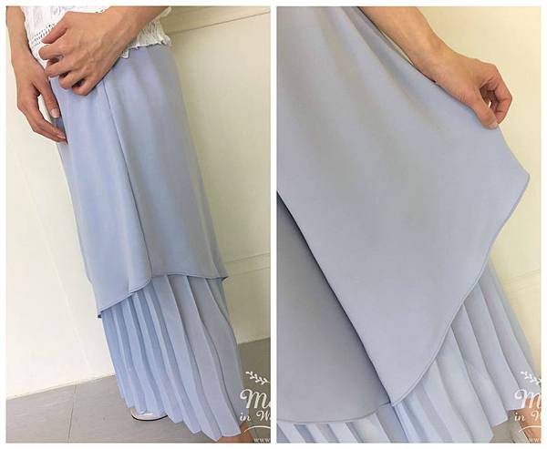仔細看外面的雪紡褲是斜擺波浪的設計,