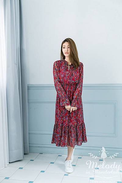 以往這種碎花洋裝,可能會搭配上跟鞋走氣質路線!