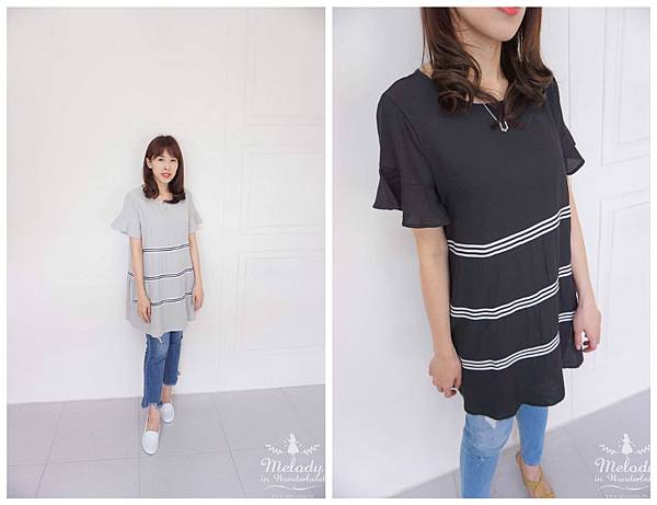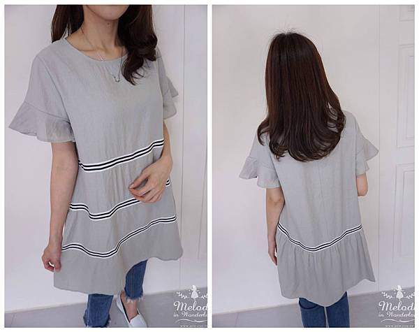 A字版型穿起來就是修身好藏肉,再加上修飾手臂的袖擺荷葉邊!