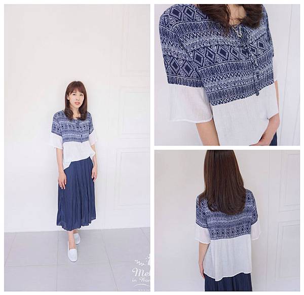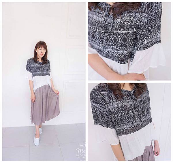 再加上一般上身布料都是棉質,因此搭配上這裙子的布料,