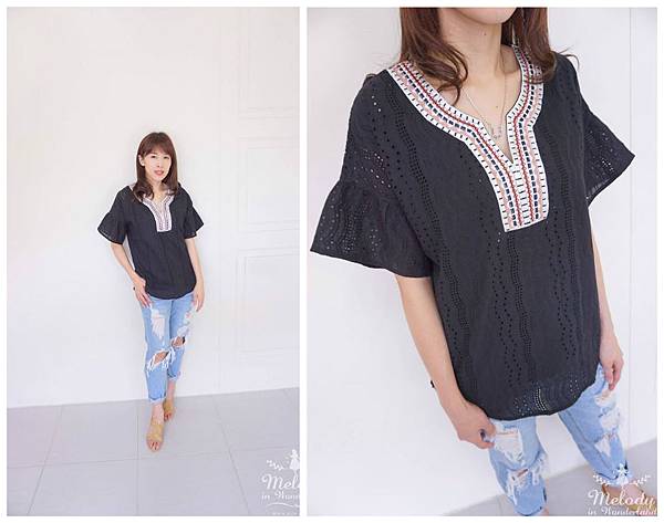 NO3.1704-003 民族風編織領飾上衣(2色)