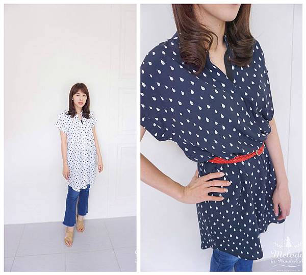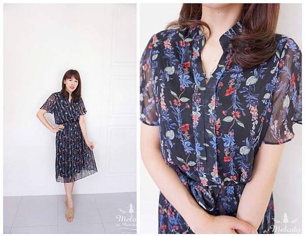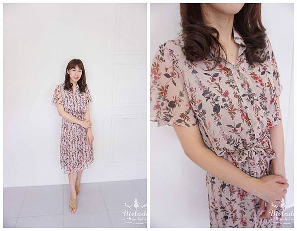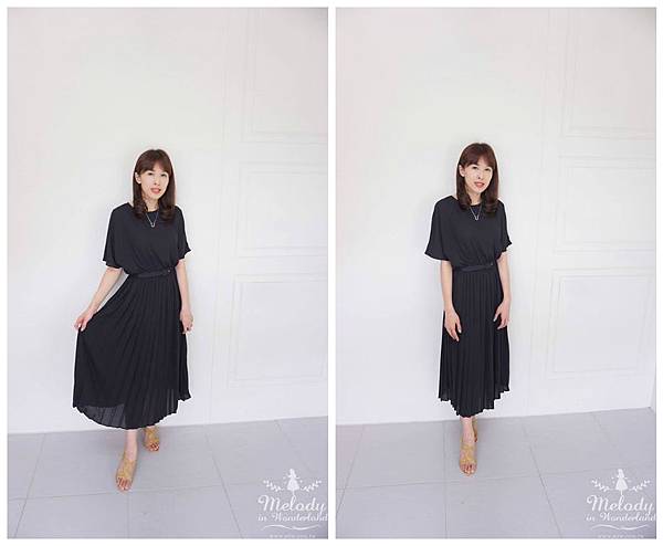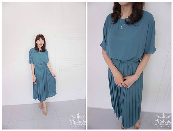 洋裝上身的比例比較短,所以穿起來自然顯得高挑