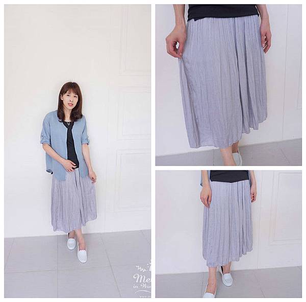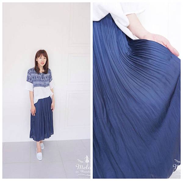 從下面右上的這張近拍,可以看出這款裙子的摺度,在接近腰的部分比較密~