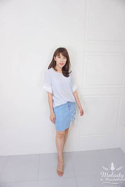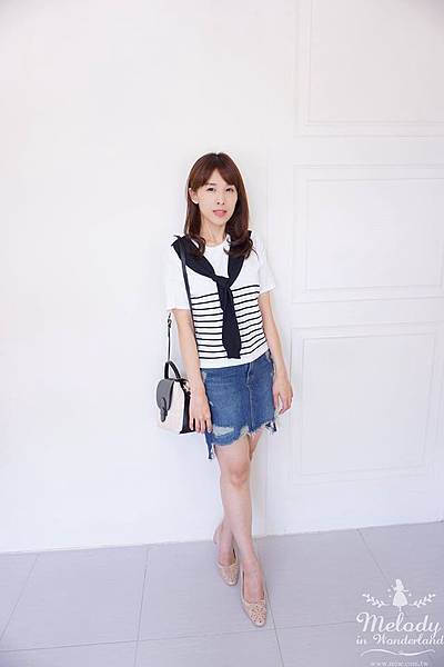 缺角的裙襬,也再次幫助拉長腿部的比例和線條~