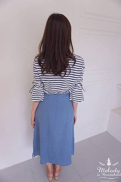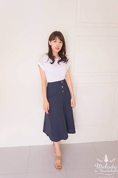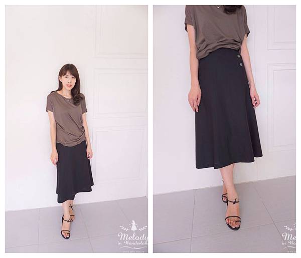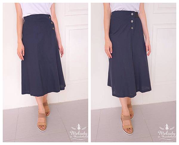 排釦在一側,穿起來像A字裙的樣子~