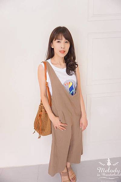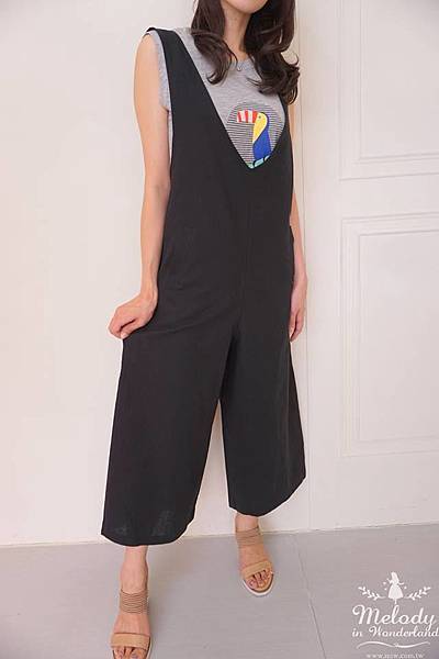 1707-021 V領吊帶寬褲(3色)