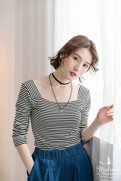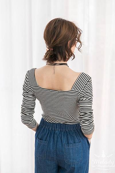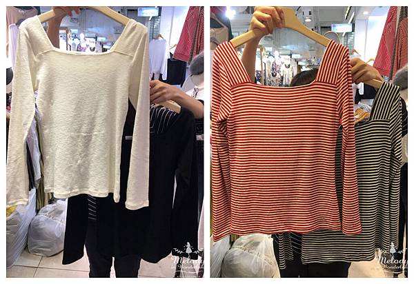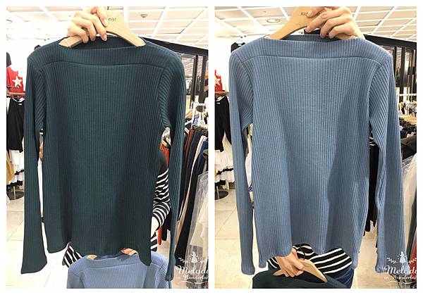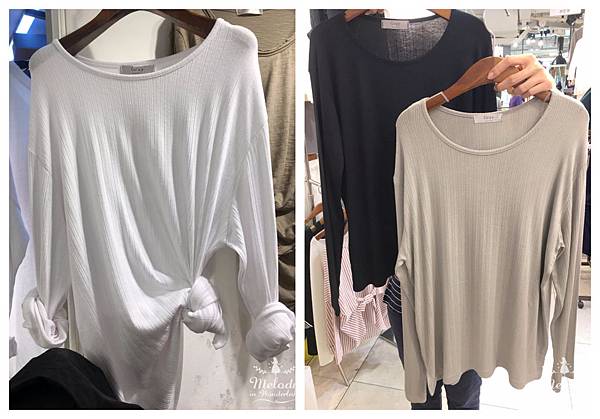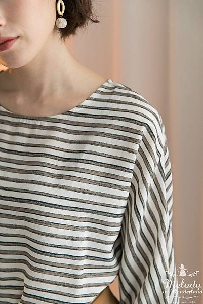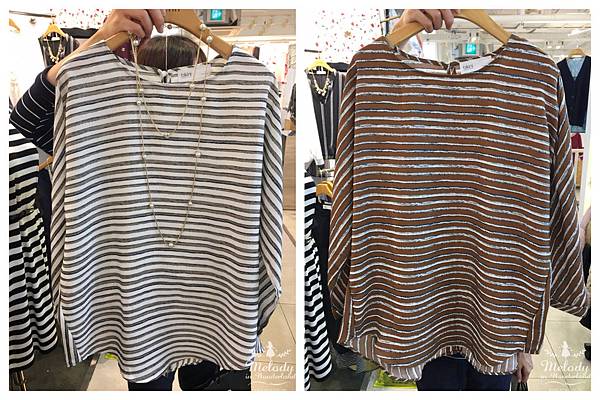 這款上衣,素面和條紋款,兩款布料不太一樣喔~