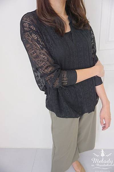 1709-004 假兩件透膚蕾絲上衣(2色)
