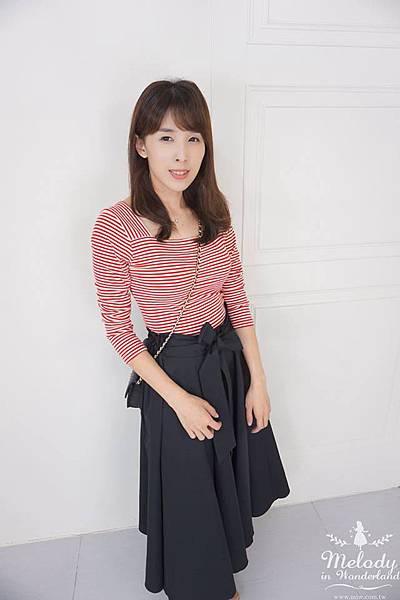 首先,布料上的直條壓紋,會有拉長的視覺效果~
