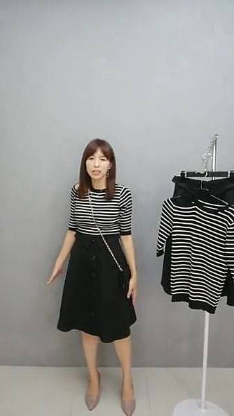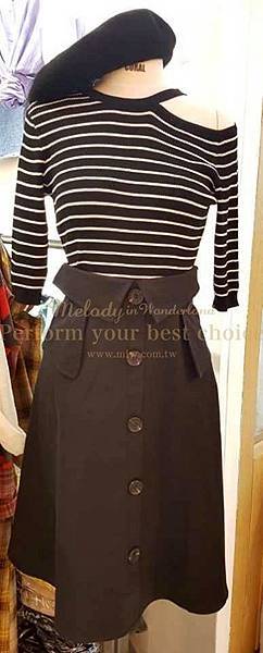 1809-005 挖肩針織條紋上衣&排扣裙套組