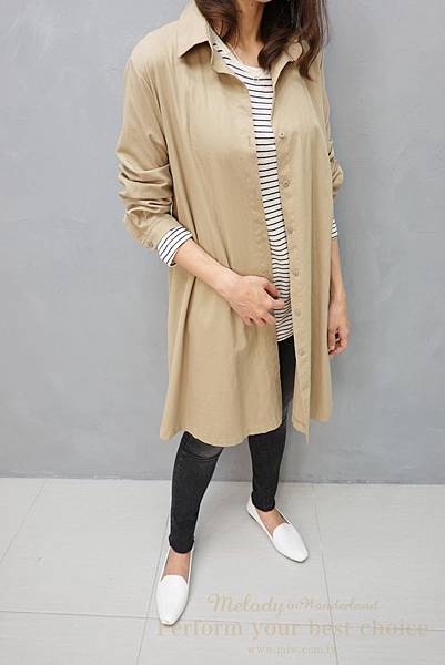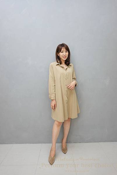 類似風衣布料的挺度,A自裙版型~穿起來非常修飾下身!
