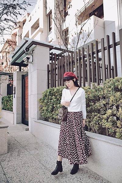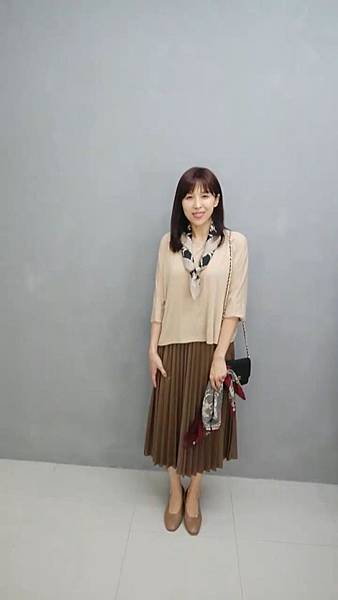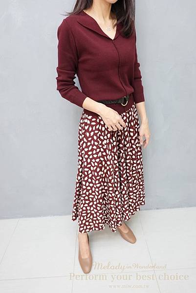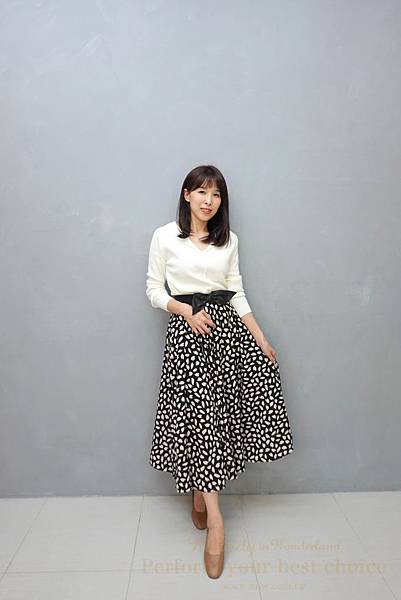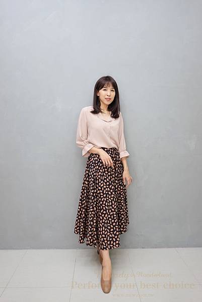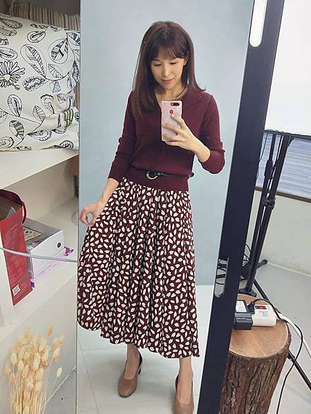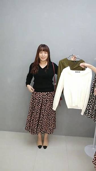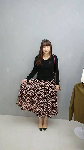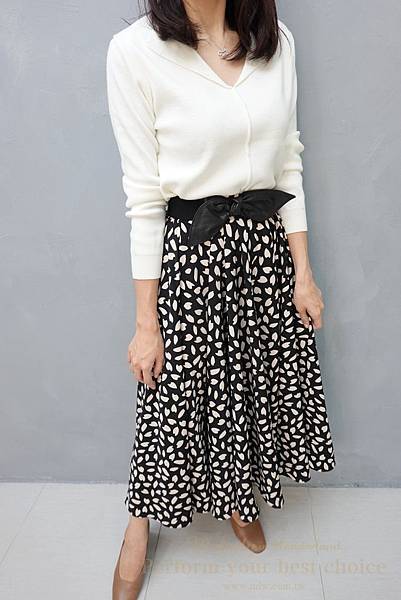搭配上身時可以選擇裙子上有的花色來搭配~