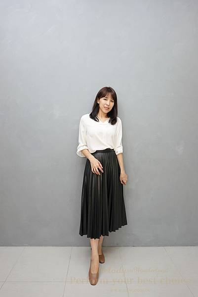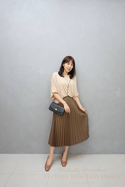 藉由裙摺立體度漸寬的設計,讓A字裙的幅度更加明顯~