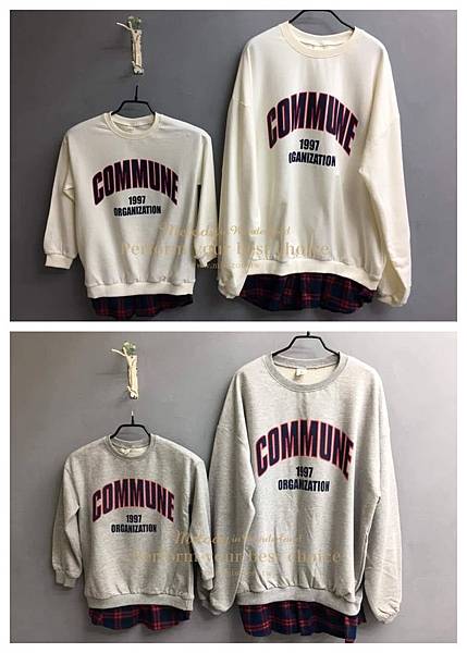 1810-027 親子裝-COMMUNE字母假兩件大學(2色)