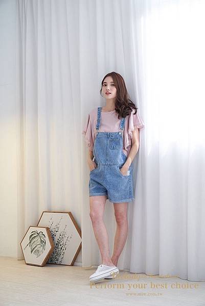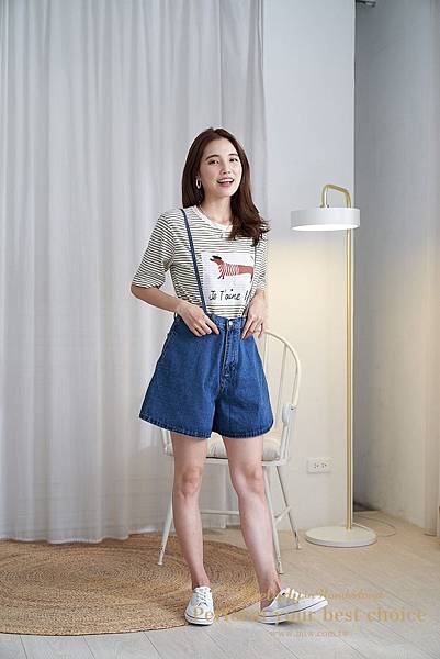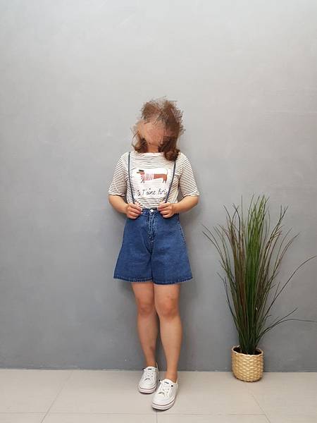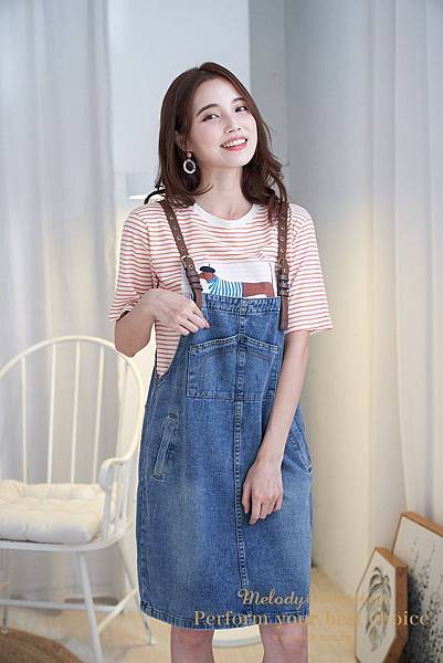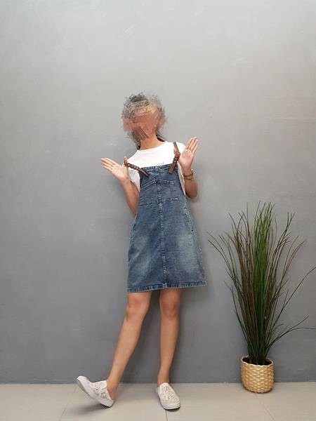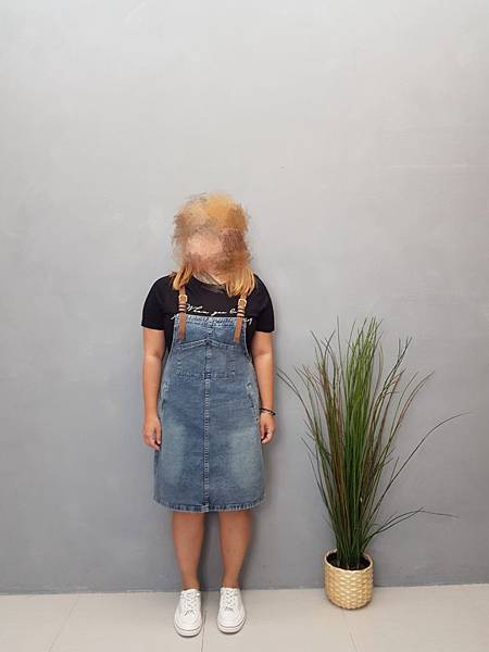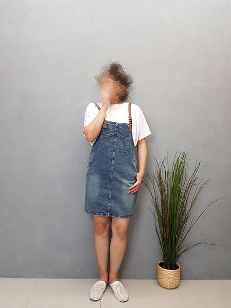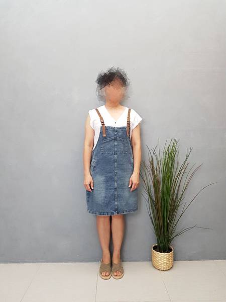 ②B1907-216 皮革肩帶牛仔吊帶裙-穿起來舒適(矮個子也OK呢)