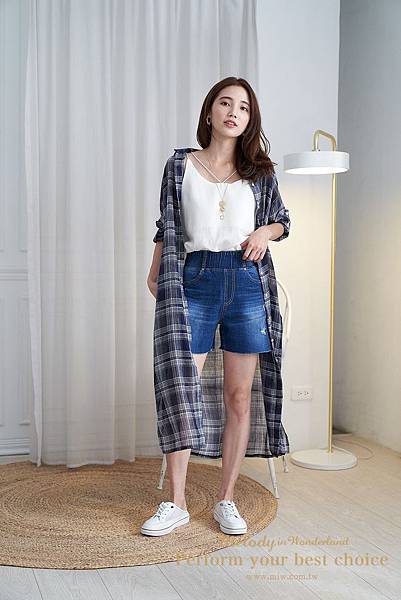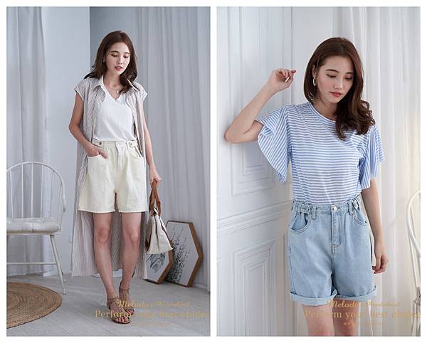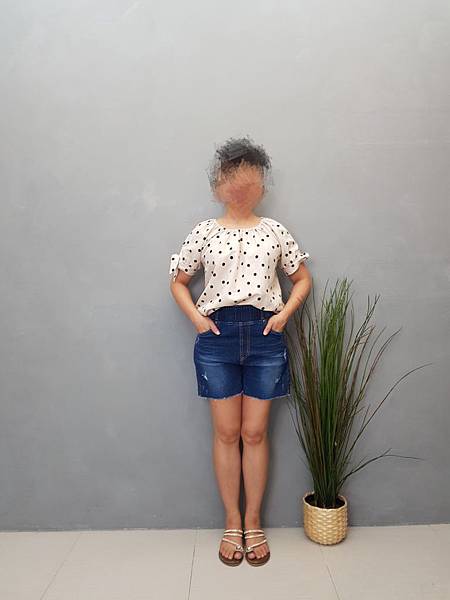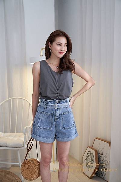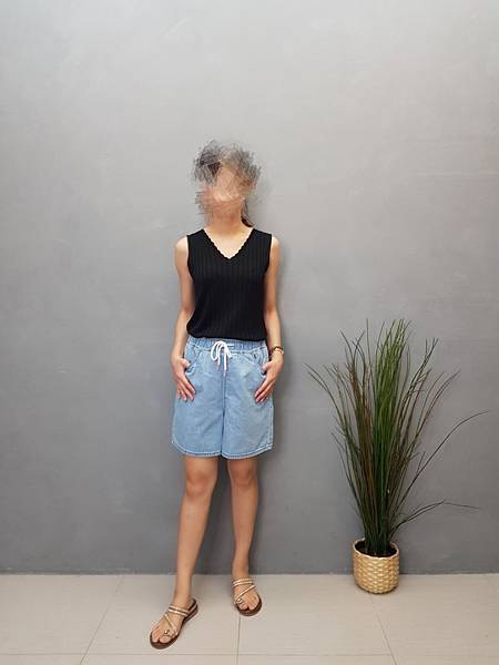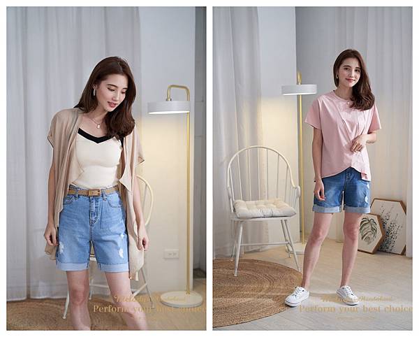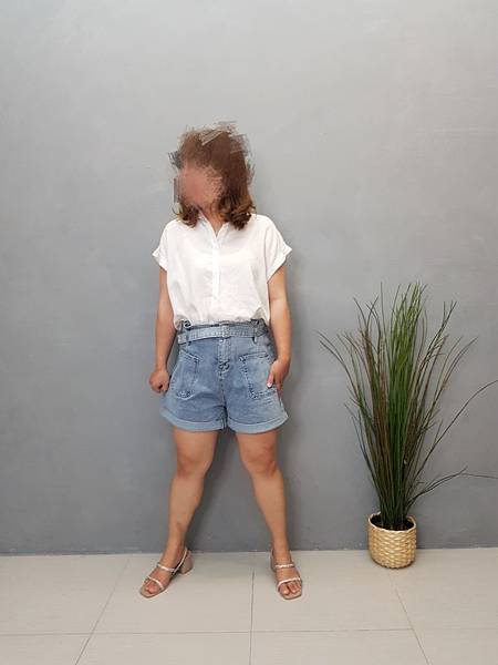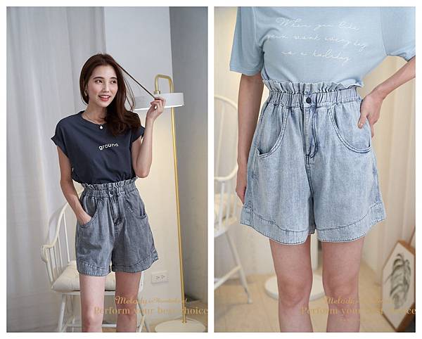 再來是① B1907-238 三段腰圍設計牛仔短褲(2色)
