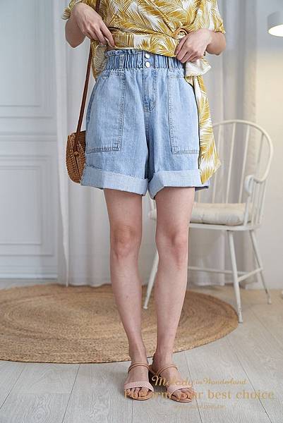 ① B1907-238 三段腰圍設計牛仔短褲(2色)
