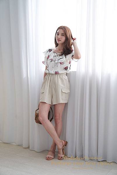 ③ B1907-242 淺色微刷粉頭綁帶短褲